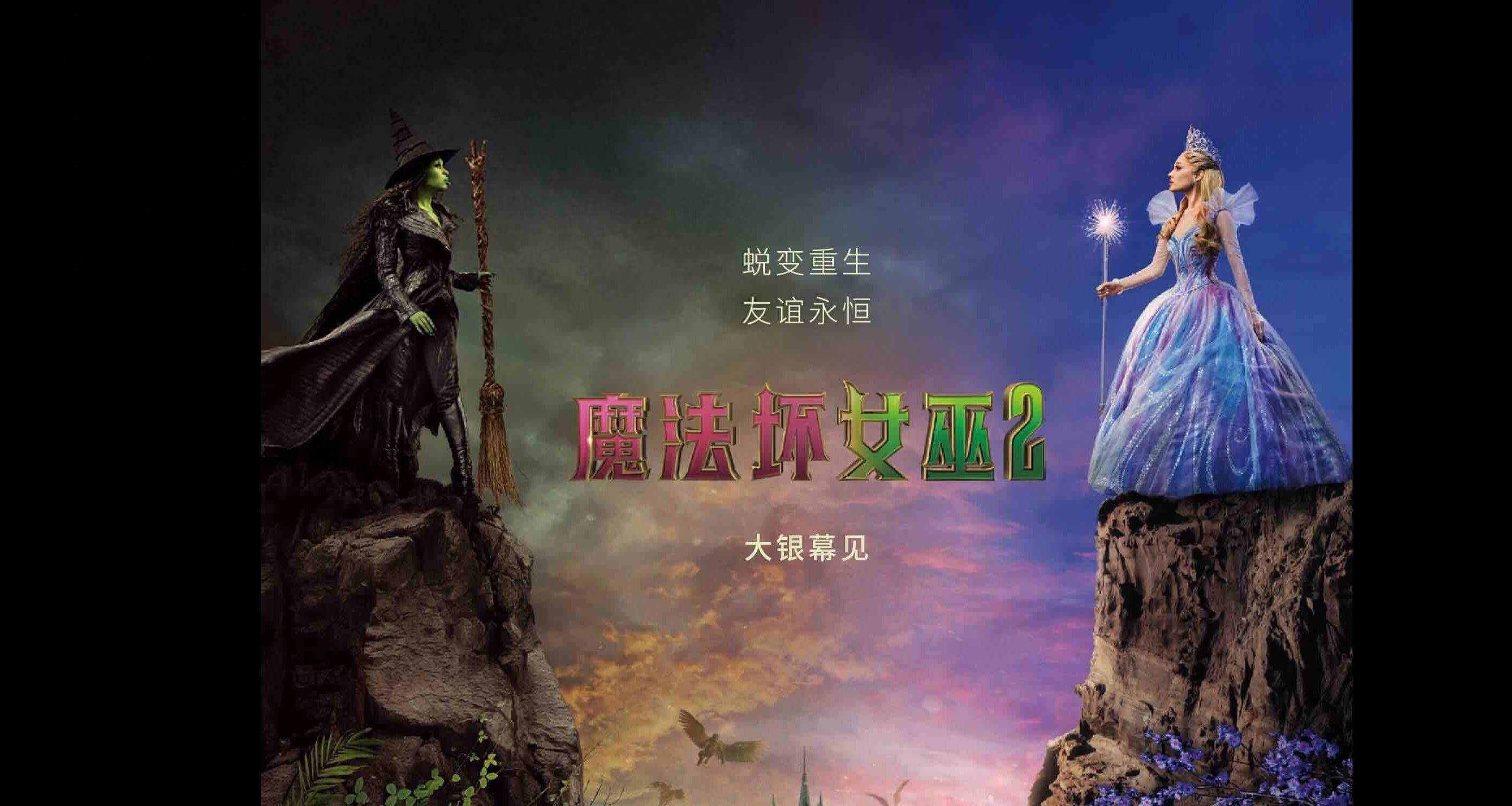 2024年上映的《魔法坏女巫》凭借7.5亿美元的票房位列年度全球电影票房榜第五!此外,影片口碑一路飘红,烂番茄新鲜度88%、爆米花指数95%,同时收获CinemaScore A级认证!影片在颁奖季的表现同样惊喜,获得第97届奥斯卡十项提名,并夺得最佳艺术指导与最佳服装设计两项大奖。全方位亮眼表现堪称2024年最具人气与影响力的爆款佳作!此次《魔法坏女巫2》将延续前作温暖治愈的情感浓度与震撼迷人的视听美学,不仅有《No Good Deed》《For Good》等经典曲目的回归,辛西娅·埃里沃和“A妹”还将分别在电影里献唱原创新歌,为观众带来跨越银幕的共鸣与感动。值得一提的是,影片海外预售一经开启便势如破竹,创造今年北美影片预售首日最高票房记录,可谓热度十足,期待值拉满!